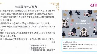 株主優待 7800 アミファ 優待内容9月権利3年以上でQUOカードPay 1,000円です。指標2026/3/6終値 1,528円PER 12.2倍PBR 2.10倍ROE 9.6%自己資本比率 58.3%配当利回り 1.70%優待利回り 0.65%感想優待までに3年... 2026.03.10 株主優待