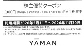 株主優待 6547 グリーンズ 優待内容12月権利で宿泊優待券です。コンフォートホテルなどで利用できます。100株 2,000円200株 3年未満 4,000円 3年以上 5,000円500株 3年未満 8,000円 3年以上 10,000円1,000株 3年未満 10,... 2026.04.19 株主優待