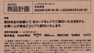 株主優待 7453 良品計画 優待内容2,8月権利で 7%割引券です。何回でも利用できます。妻が無印良品でフル活用しています。指標2026/1/16終値 3,170円PER 31.7倍PBR 4.58倍ROE 16.2%自己資本比率 59.0%配当利回り 0.88%感想... 2026.01.24 株主優待