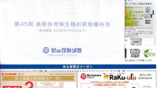 優待内容2,8月権利で優待券です。ビックカメラでも利用できます。2月権利分に優待変更があり拡充となりました。2月 100株 2,000円 500株 4,000円8月 100株 1年未満 1,000円 1年以上 2,000円 2年以上 3,0...