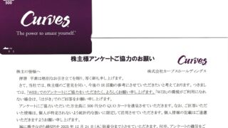 優待内容8月権利で 500円のクオカードです。指標2026/1/9終値 799円PER 15.6倍PBR 3.64倍ROE 21.7%自己資本比率 51.4%配当利回り 3.12%優待利回り 0.62%感想連続増配中です。アンケートに回答す...