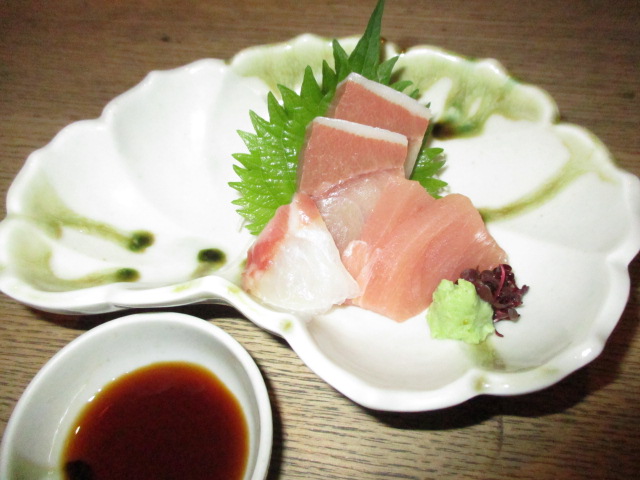 お造りです。カジキが鮪と勘違いしそうなほど美味しく感じました。このようにカジキを美味しく食べられる店は少ない気がします。
