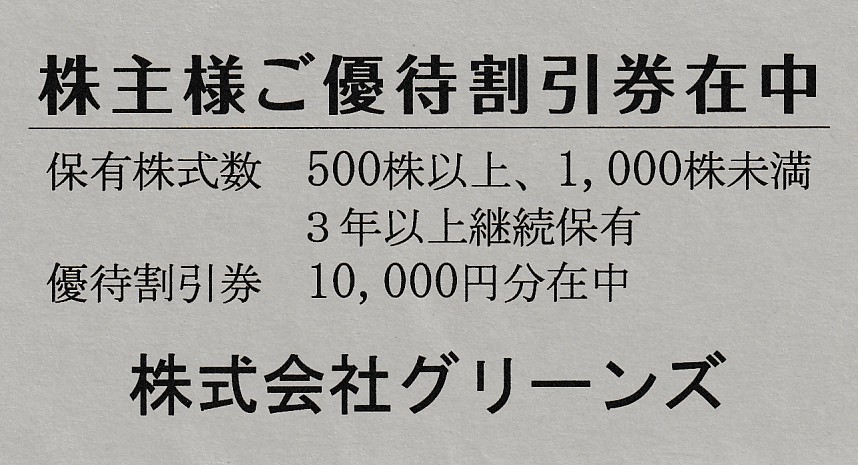 1,000株 3年未満 10,000円 3年以上 15,000円