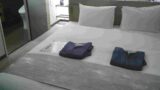 先に進んで部屋の前にもう1つ水道がありました。こちらは飲料水を得るための水道ですね。下の冷蔵庫にミネラルウォーターが2本。消費してはいなかったのですが、連泊でしたので翌日また2本追加されていました。