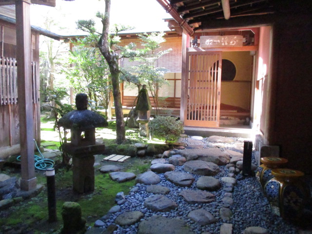 金沢旅行3日目の昼は、老舗料亭 大友楼 が経営する茶寮 一井庵(いっせいあん) を訪れました。庭を見ながら食事できる茶寮です。妻は半月御膳 4,500円(税込) を予約しました。和のアフタヌーンティーセット 4,500円(税込) と迷ったそうです。入り口は料亭と茶寮で分かれていたそうですが、現在はどちらからも入る人がいるそうです。私たちは茶寮の入り口から入りました。