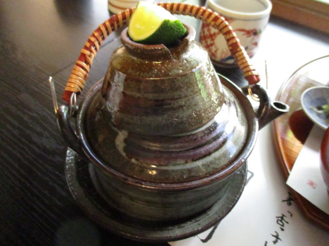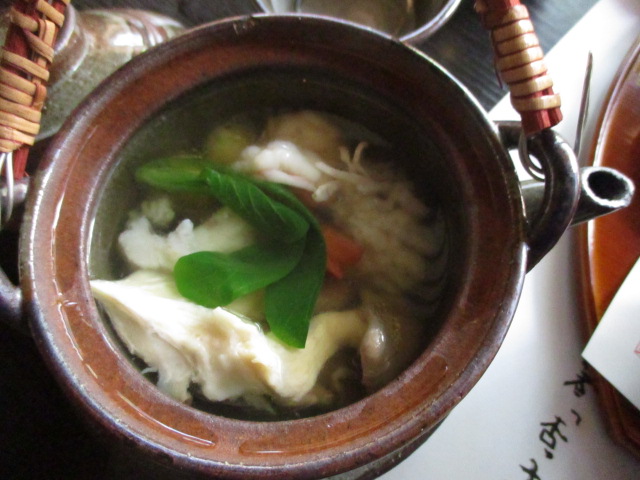 土瓶蒸しは具たっぷり。汁は少しだけ味見して、残りはこげ茶漬にかけます。
