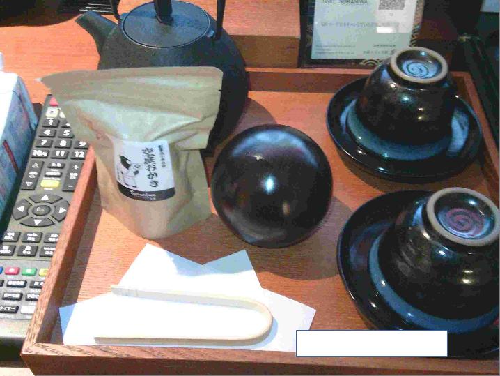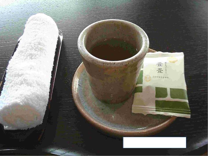 受付で出されたお茶とお菓子