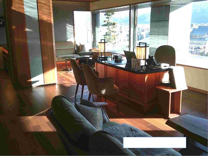 レセプションデスクは一般用の奥にあって、VIP扱いな気分。