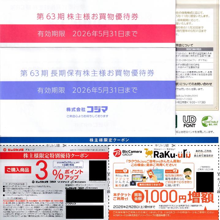 2,8月権利で優待券です。ビックカメラでも利用できます。