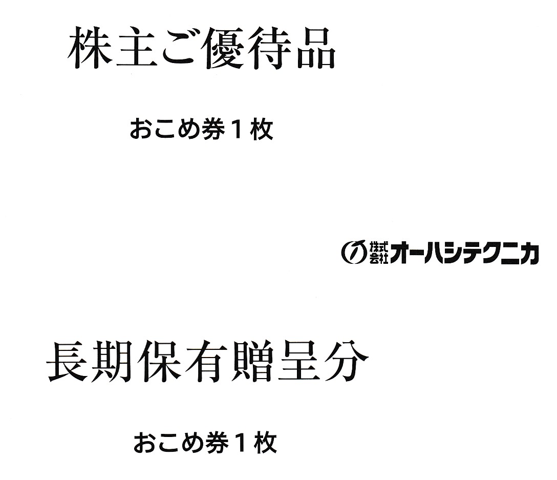 3,9月権利でおこめ券1枚です。3年以上で1枚追加になります。300株以上の優待もあります。