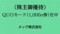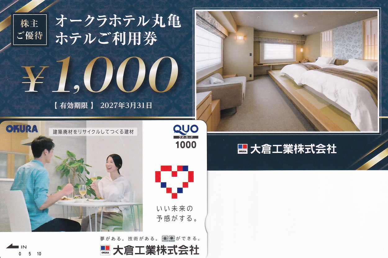 12月権利でクオカード 1,000円です。オークラホテル丸亀 利用券も付いてきますが、立地的に使い辛いです。