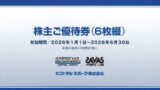 6月権利、1年以上で 1,000円、3年以上で 2,000円のクオカードです。