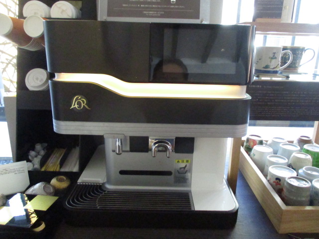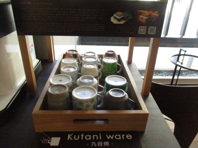 コーヒーマシンにはいつもお世話になっています。2泊すると 10杯くらいは飲んでいますね。九谷焼のカップで飲めたりもします。基本、部屋に持ち帰りなので使いませんでした。