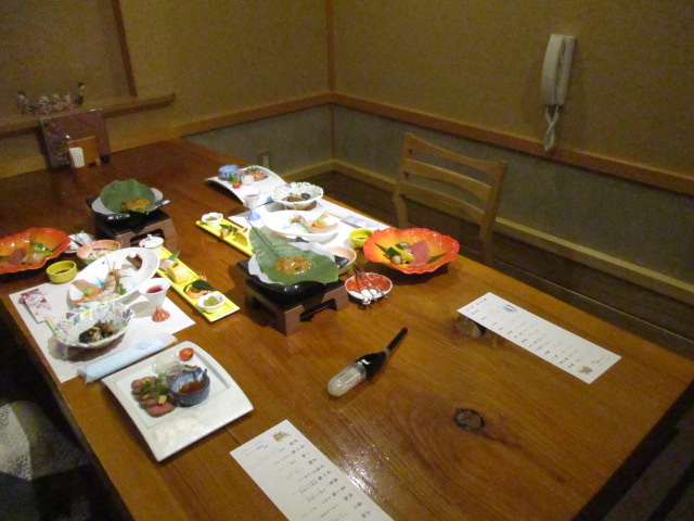 個室での食事でした。家族経営で手間はかけられないようで、始めから配膳されている品が多いです。