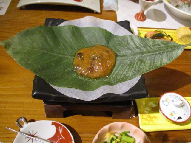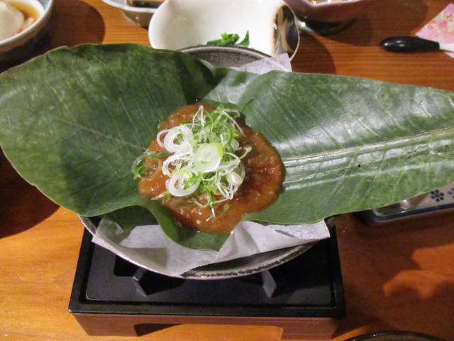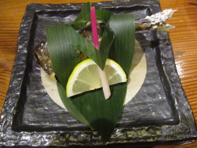 暖かい物が後から運ばれてきます。焼き物の子持ち鮎塩焼きです。