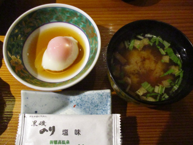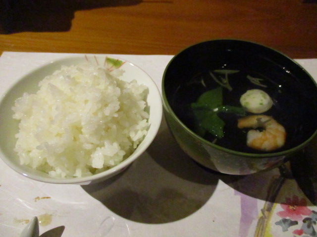 ご飯と止め椀。ご飯は大盛でもらいましたが、この時点では既におかずがない。香の物も最初に出てきましたので、すでに食べてしまいました。焼き焦げた棒葉味噌をつけて食べました。