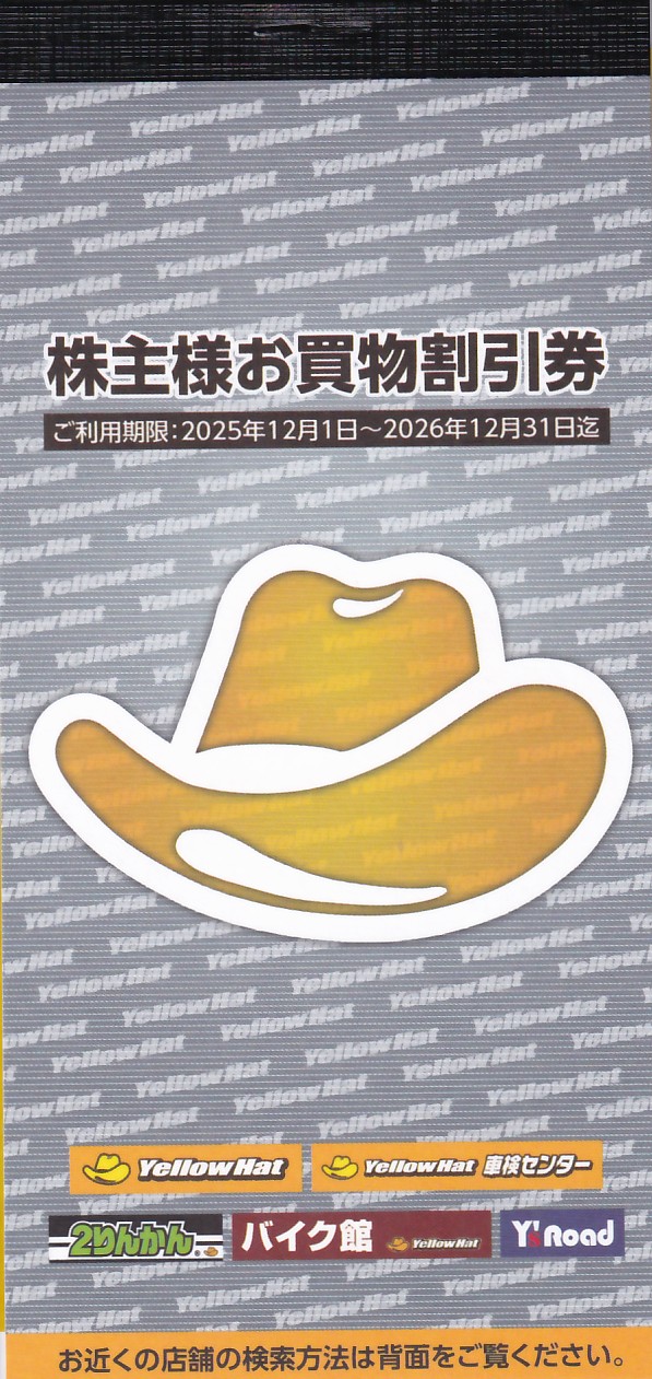 連続増配中です。株価も上昇してきて、割安感もかなり薄れてきました。200株保有しているのは分割によるもので、分割後も放置を続けています。オートバックスを利用していますので、イエローハットの優待券は全く利用していません。