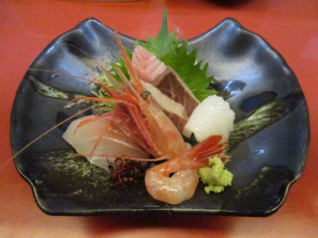 献立表がないので、提供された順にひたすら画像をアップしていきます。左画像の左端は大根です。金沢おでんは名物のようなので、その1つかな。右画像はお造りです。裏側になって見えませんが、つまが大根ではなく南瓜だそうです。見た目には大根にしか見えなくて衝撃です。