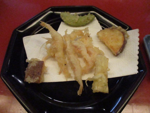 白海老の天ぷらを食べている間に、野菜の天ぷらが追加されます。